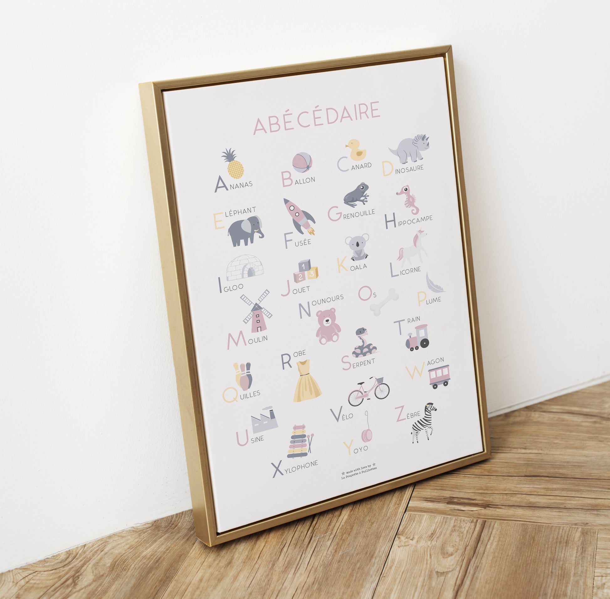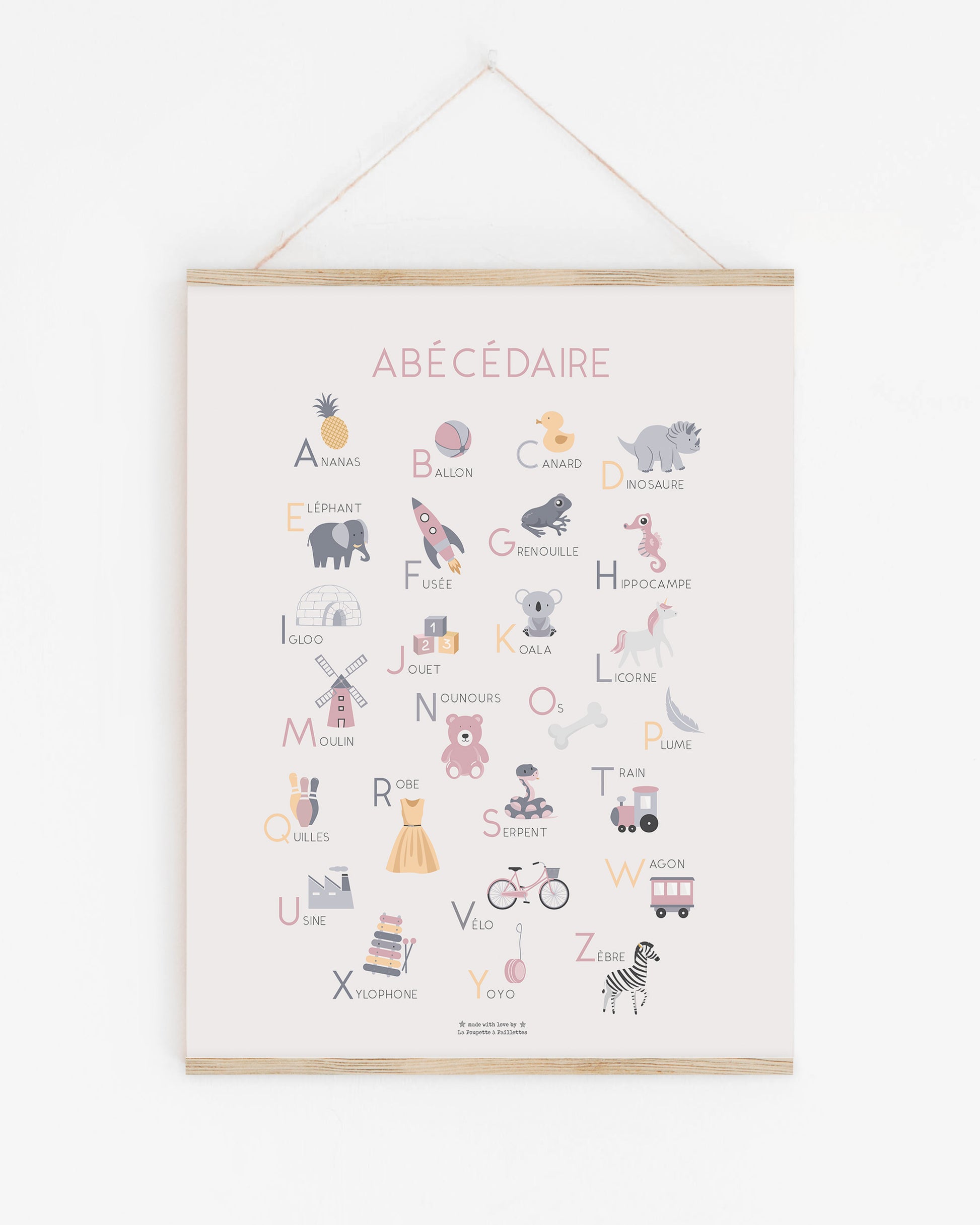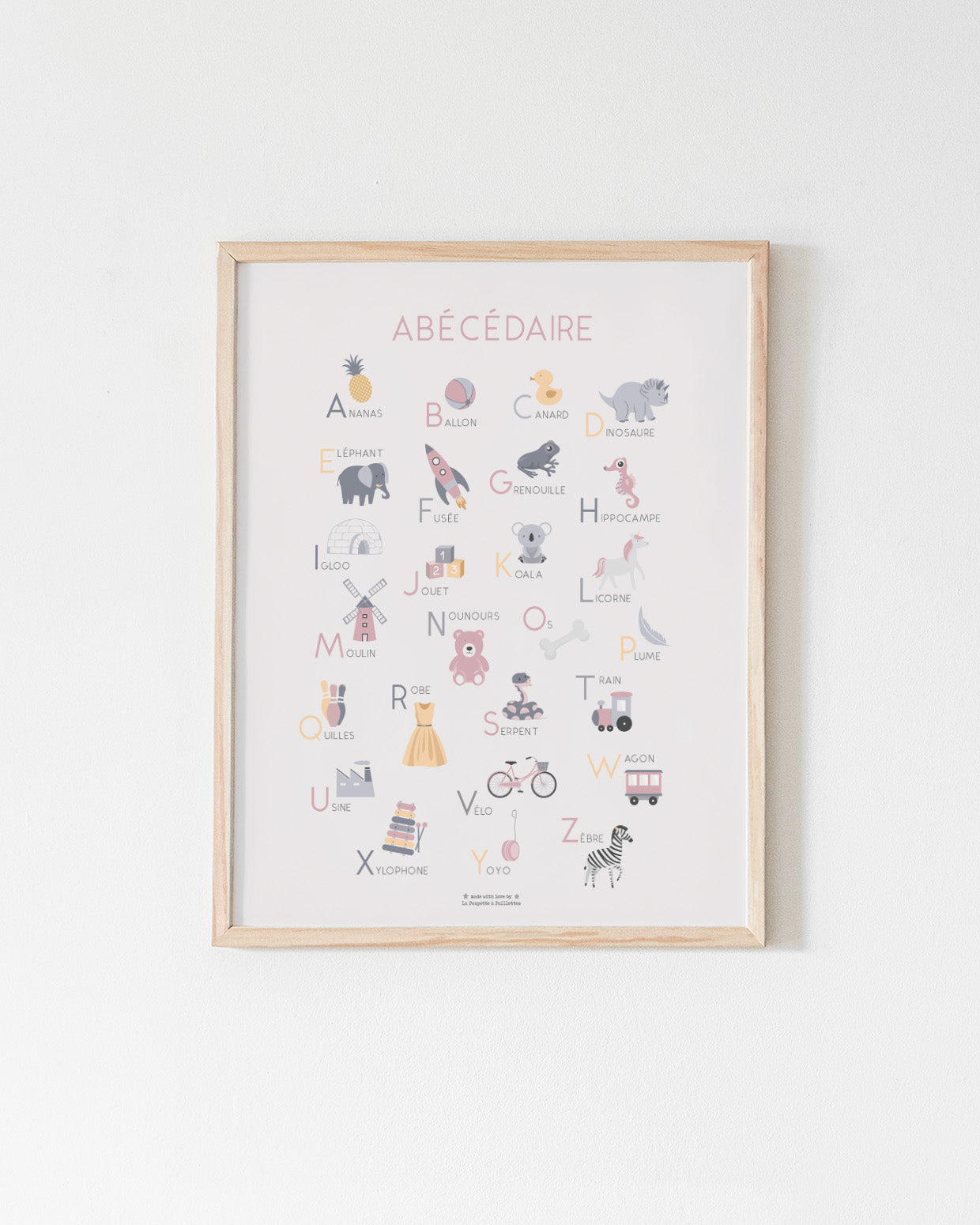 Affiche Abécédaire alphabet pour décorer la chambre de votre enfant. Idéale pour apprendre l'alphabet de manière ludique dans un décor doux et minimaliste.